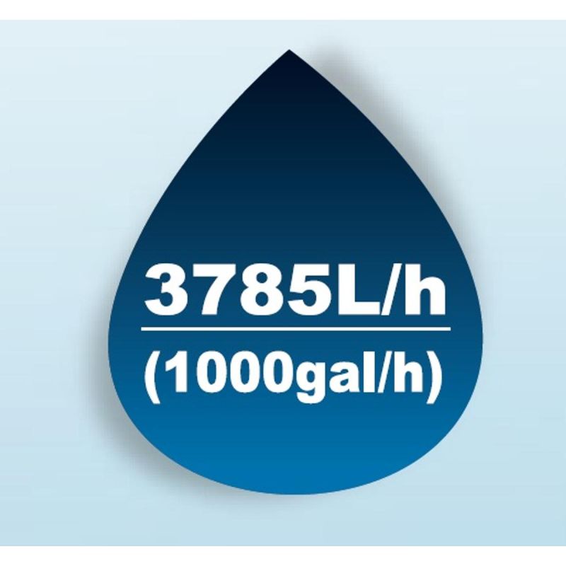 - Water flow: 3785 liters per hour 1000gal/h