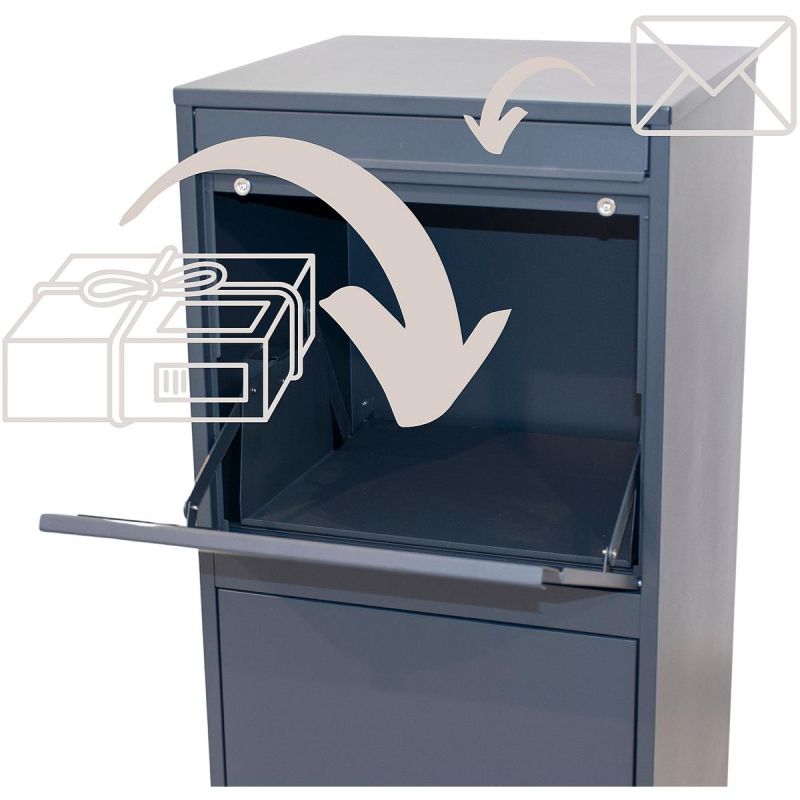 The 2-in-1 functionality means the mailbox can be used for both traditional mail and larger courier shipments. This eliminates the need for separate containers – everything is delivered to one secure location. This is an ideal solution for online shoppers who want a convenient, contactless way to receive parcels and letters, even when away from home.