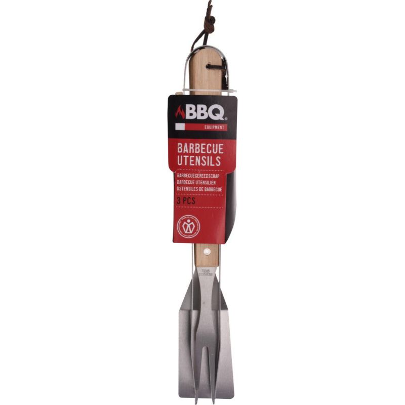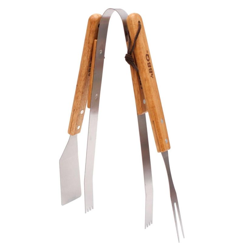 3-in-1 BBQ Utensil Set with Wooden Handle