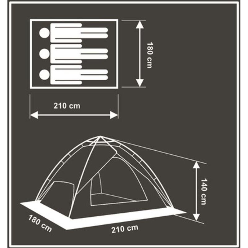 3-PERSON AUTOMATIC TENT 2IN1 HOLIDAY 210x180x140CM