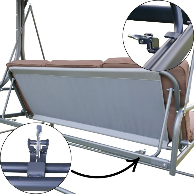 The ability to recline the backrest into a lounger position is a unique feature that allows you to enjoy relaxation while lying down. Perfect for sunbathing, napping, or simply relaxing after a long day. This feature turns the swing into a true comfort zone in your garden.