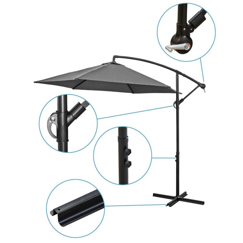 Our umbrella stands out for its modern design, unique shape, and durability. Thanks to its stable and durable steel construction, it can withstand many gusts of wind. It's perfect for outdoor use, in the privacy of your garden, on a terrace, or on a balcony.