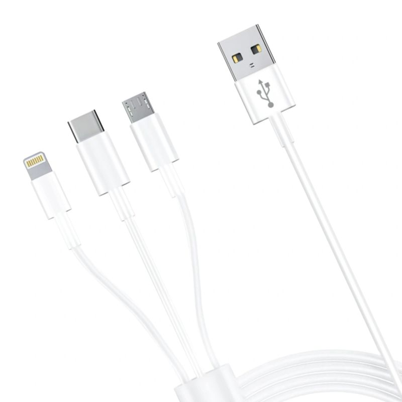 Accessories - 3MK Cable USB type A to USB C/Micro USB/ Lightning 1.2m 20V/2.4A 15W White MM - global