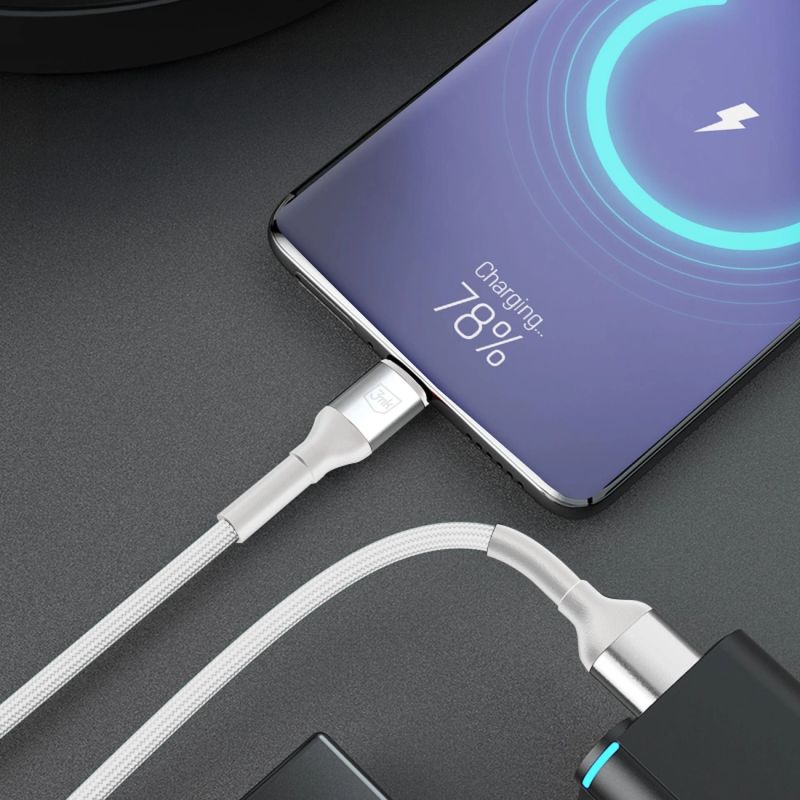 This cable combines durability and elegance, with its signature high-quality aluminum tips. Anodizing increases their scratch and corrosion resistance, ensuring a long-lasting, aesthetically pleasing appearance. The ergonomic shape facilitates a secure grip and precise connection, while the metal housing efficiently dissipates heat, ensuring stable and safe charging and data transfer.