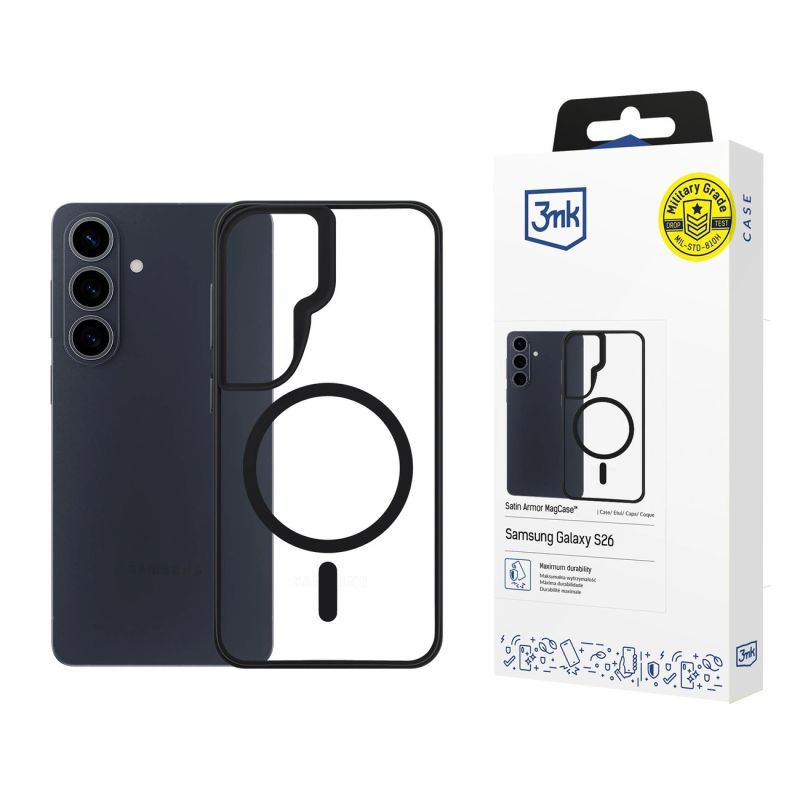 3mk Satin Armor MagCase for Samsung Galaxy S26 - Transparent Black