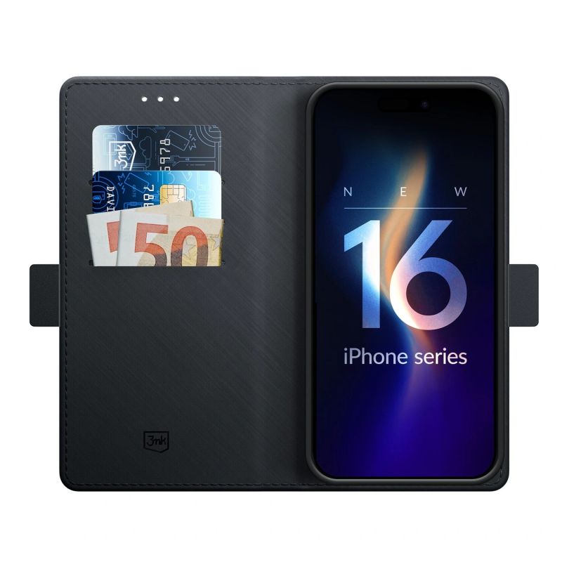 In 3mk Wallet Case™ you will find solutions and functions that convince even the biggest skeptics about wallet cases. Simple and convenient opening and closing with one hand is ensured by the magnetic flap. Even with increased intensity of smartphone use, the proven magnet system does not lose its attractive power. You can put aside worries about spontaneous opening of the flap and loss of the case's contents.