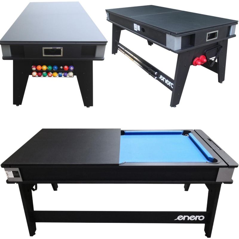 Want a table at home where you can play, eat, and have fun—without turning your living room into a sports warehouse? ENERO 4-IN-1 MULTIGAMING TABLE BILLIARDS TABLE TENNIS HAIR CLUB DINING TABLE 189x94.1x81.3CM—billiards, table tennis, air hockey, and an everyday table in one clever design!