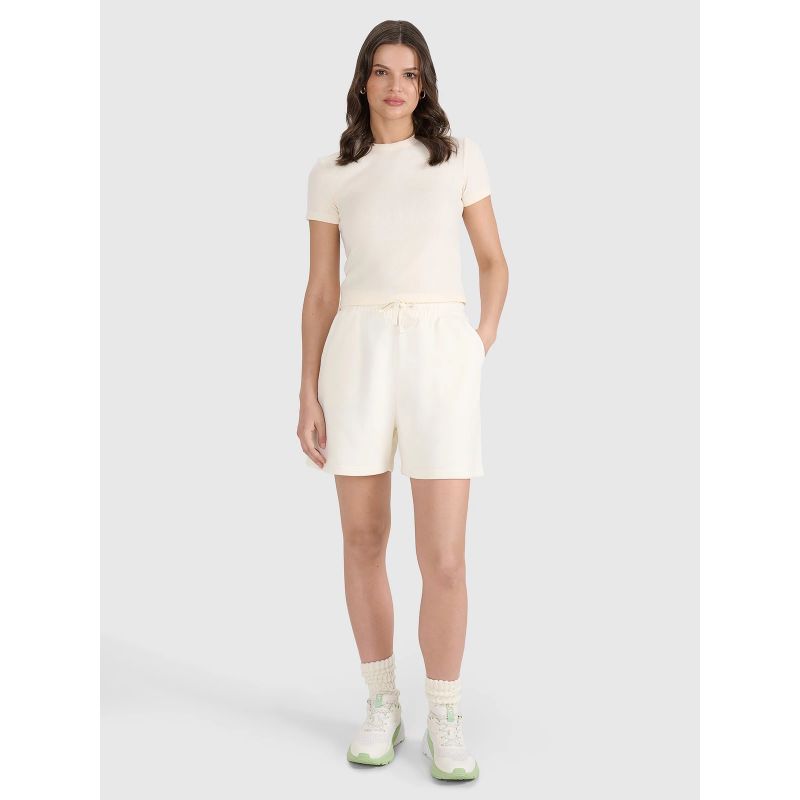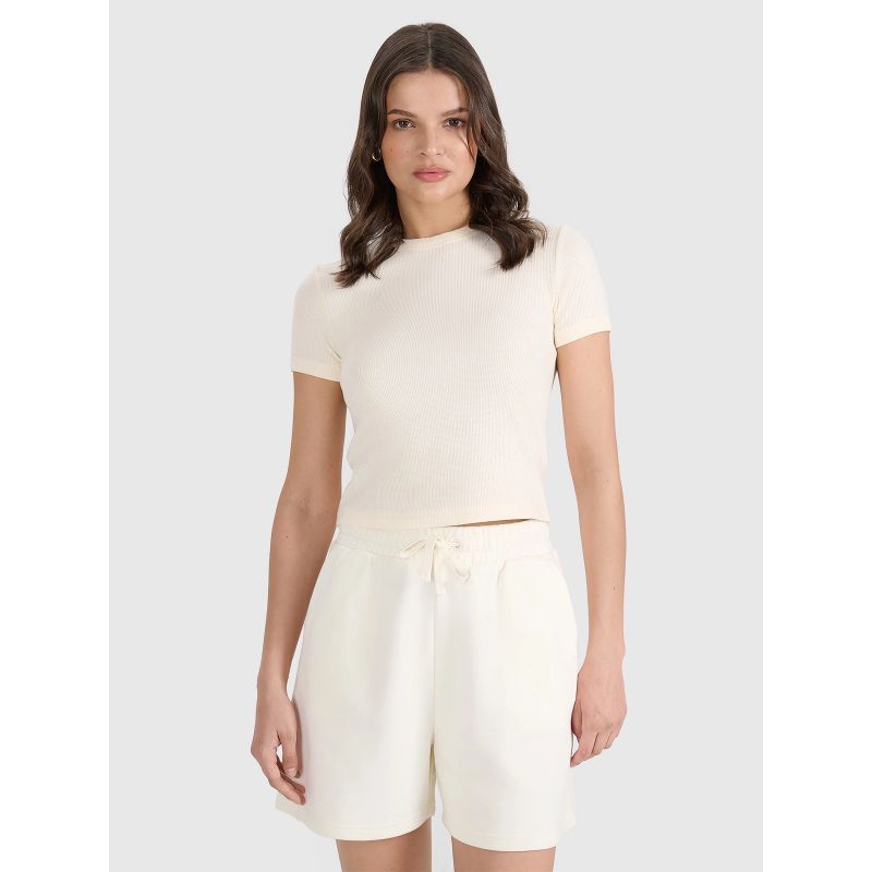 This women's short-sleeved T-shirt is perfect for both casual and everyday sporty outfits. It features a slim fit that hugs the body and accentuates the feminine silhouette, while the length reaches to the hips.