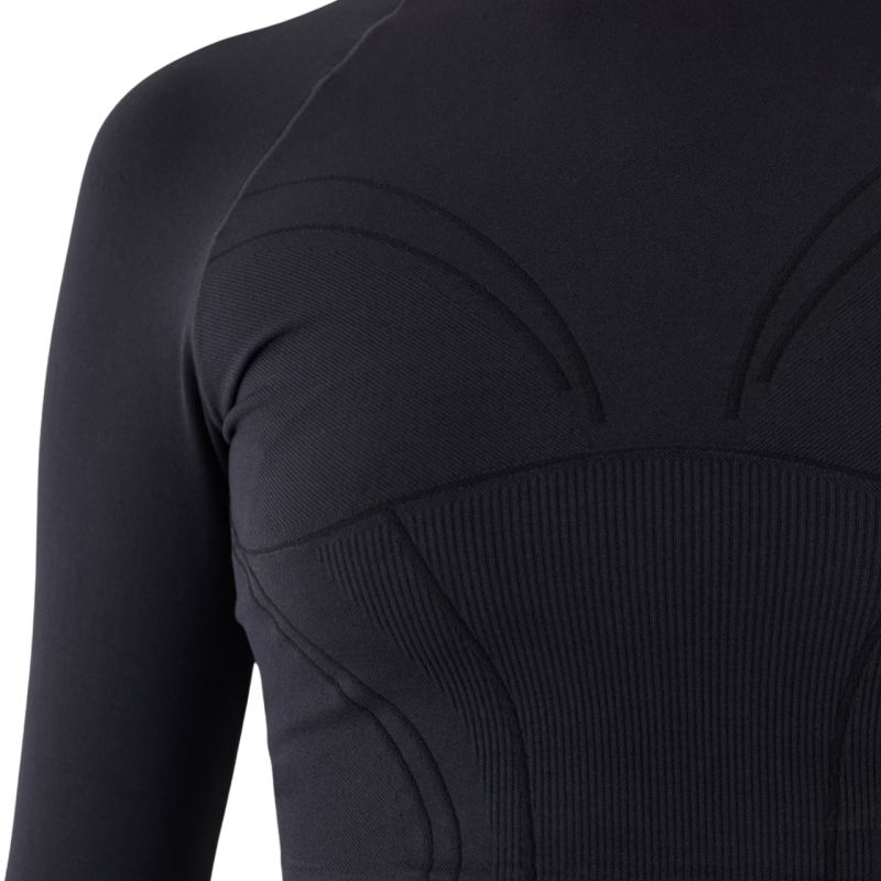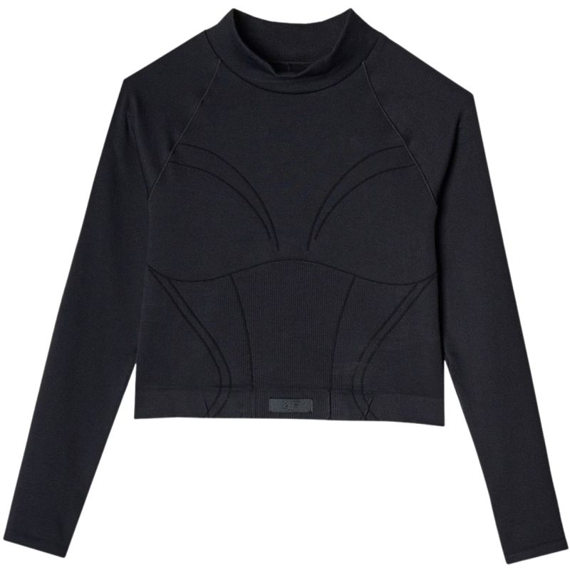This women's 4F long-sleeved T-shirt is perfect for training. Technical details: Main material: 94% polyamide, 5% elastane, 1% polyester Cut: slim that adapts to the body Shortened cropped design that reaches to the waist Made of synthetic material that ensures durability and is easy to care for Uniform colors to match many styles Soft and durable interlock fabric with a smooth structure on both sides Stand-up collar Raglan sleeves allow for unrestricted movement Quick-drying fibers in 4FDry technology wick away moisture