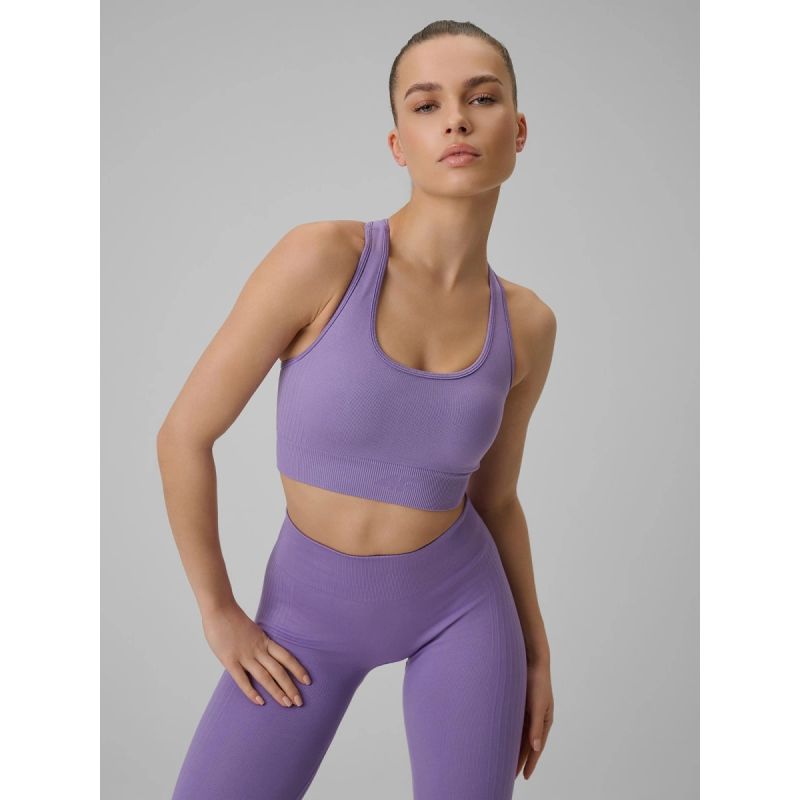 The 4F women's sports bra is a lightweight model designed for more relaxed activities and everyday comfort. It's perfect for yoga, Pilates, stretching , and lighter exercises where freedom of movement, a comfortable fit, and a pleasant feeling of dryness are key. If you're looking for similar styles, check out our women's sports bras .