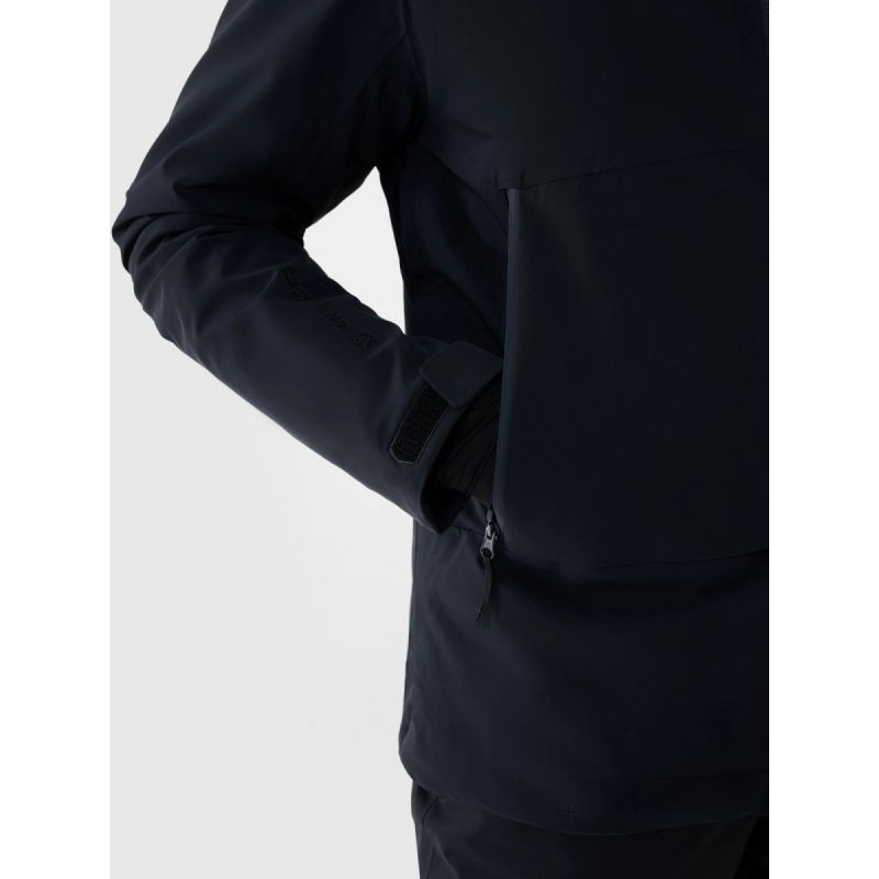 This men's 4FPro ski jacket is designed for the most demanding users who spend long hours on the slopes and expect the highest level of protection. The Dermizax 20,000/20,000 membrane from Japanese company Toray guarantees resistance to heavy snowfall, rain, and gusty winds, while also providing exceptional breathability. PrimaLoft Black Insulation Eco insulation provides lightweight, compressible comfort, and effective thermal insulation—even in damp conditions. The jacket is made of a material with enhanced durability, and the regular fit provides comfortable layering.