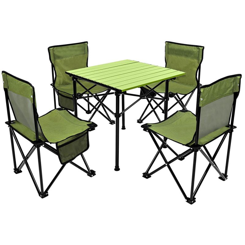 5-IN-1 TRAVEL SET TABLE AND 4 CHAIRS GREEN