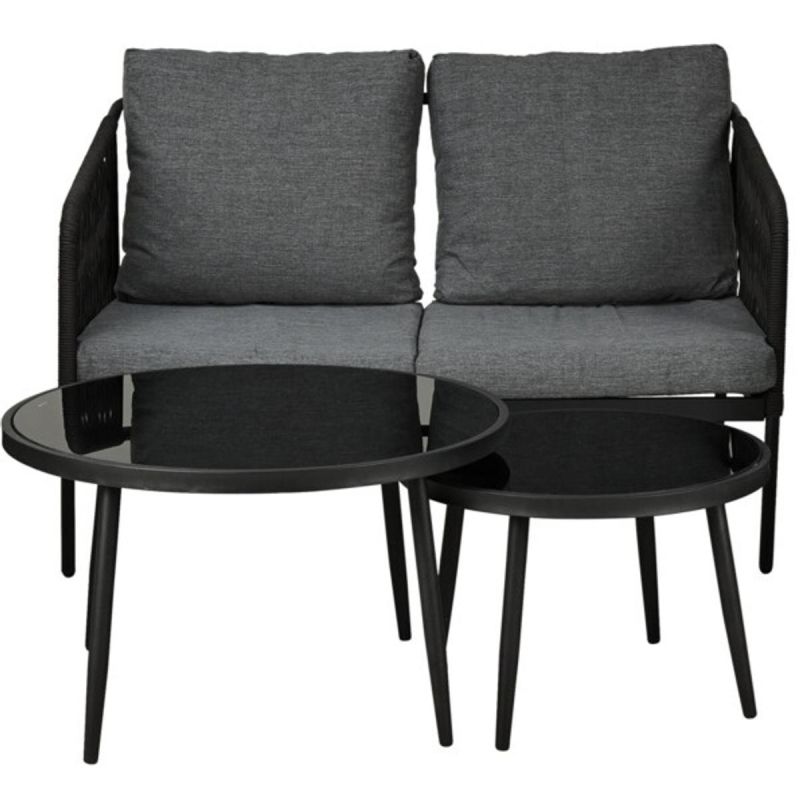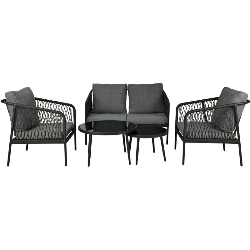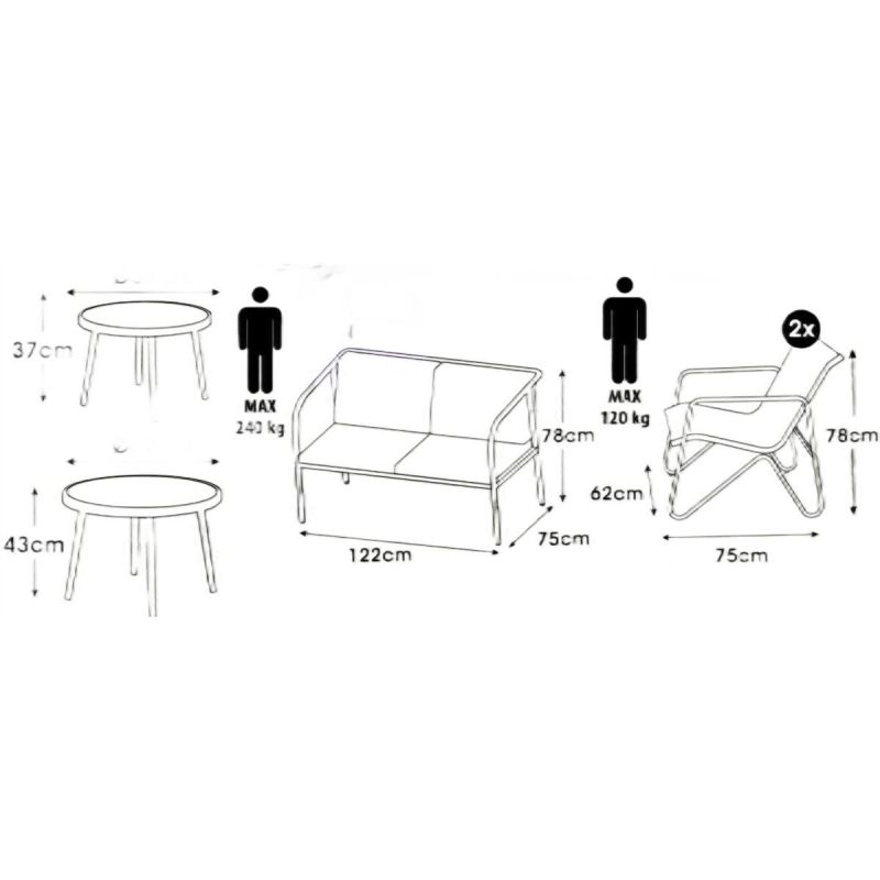 - Set includes: 2 tables, 2 armchairs, 1 sofa, pillows