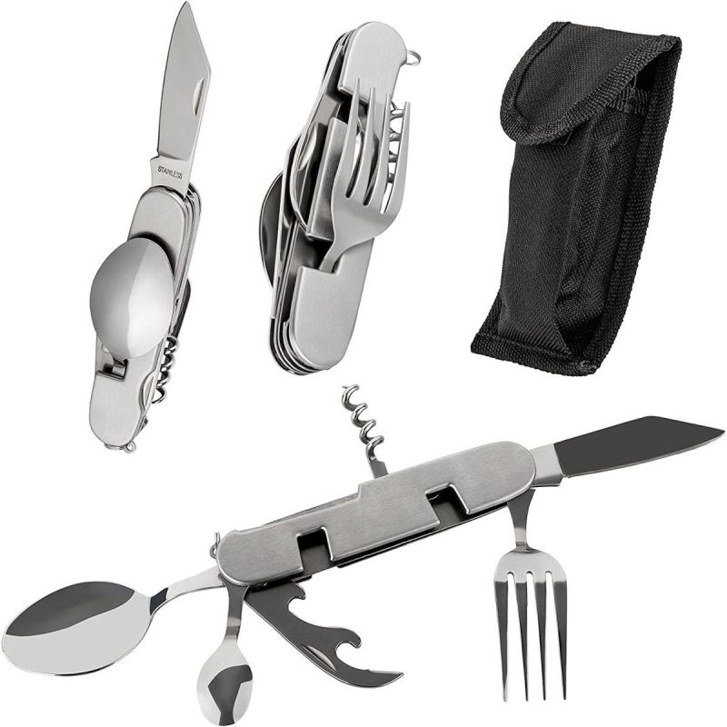 - Number of functions: 6 (knife, small spoon, spoon, fork, corkscrew, can opener)