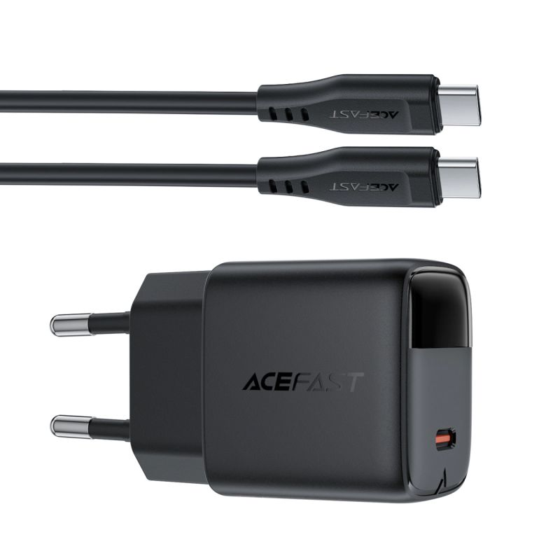 Acefast A113 GaN PD 20W USB-C Wall Charger with Display with USB-C Cable - Black