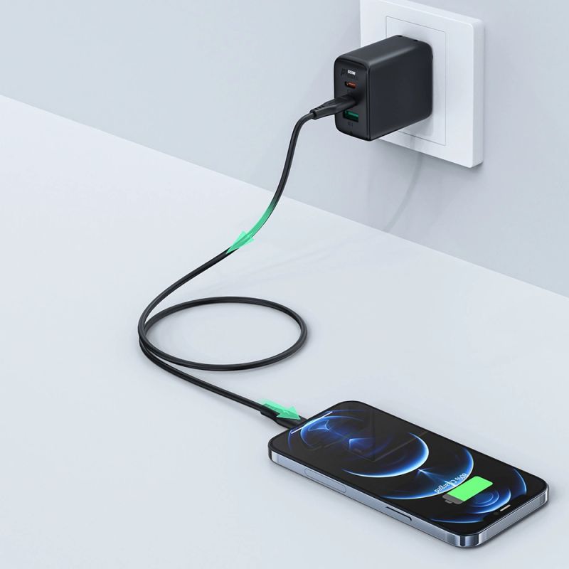 Acefast USB Type C - Lightning cable for charging and data transfer. It is intended for Apple devices with a Lightning connector. It is 120 cm long and designed to operate with a current of 30W and 3A. It is compatible with Power Delivery fast charging. It is MFI (Maide For iPhone) certified, so the phone will not display a message about a non-original accessory.
