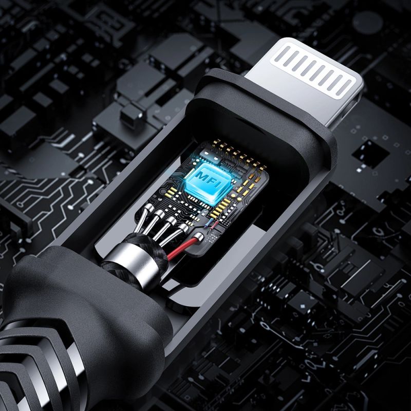 - MFI certificate. The certified integrated circuit guarantees compatibility with iPhone and iPad.