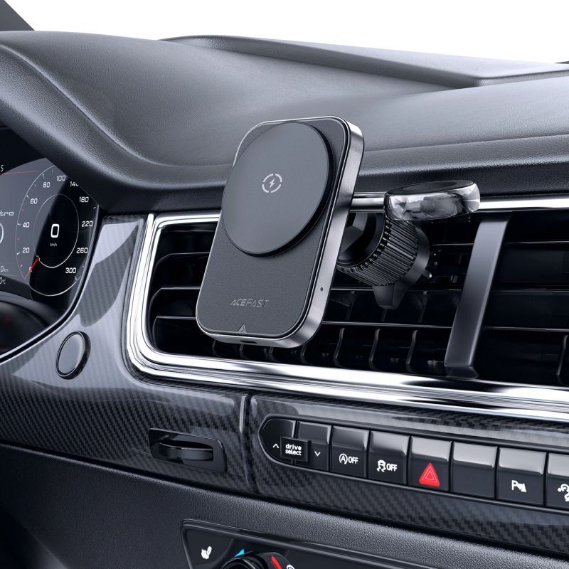 A modern and elegant phone holder with an inductive charger supporting MagSafe technology. Thoughtful design combined with easy assembly make it an ideal handle for anyone who values comfort. The Acefast D18 car holder allows you to charge your phone and watch at the same time.