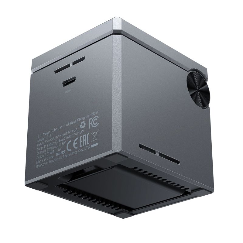 Introducing the Acefast E18 Rubik's Cube - a 3-in-1 wireless charger that provides convenience and advanced technology in a compact package! With a maximum power of 15 W, it allows you to simultaneously charge your smartphone, TWS headphones and smartwatch. Its innovative design with an adjustable structure and 360° phone rotation function offers extraordinary comfort of use. Made of durable PC material, it is both stylish and practical. Acefast E18 is an excellent choice for people who value order, convenience and modern solutions. Invest in reliable charging and enjoy functionality that will make your everyday life easier!