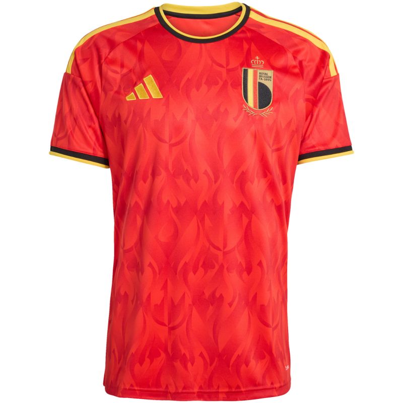The adidas Belgium 26 Home Jersey (red) JM8381 is inspired by the spirit of the RBFA, featuring a dynamic devil and flame design that symbolizes energy and courage. adidas Climacool technology helps keep you cool and dry by wicking away moisture during intense play. A slim fit, interlock fabric, and 100% recycled polyester ensure comfort and durability. Finished with embroidered 3-Stripes, a team crest, and the adidas logo. Material: 100% recycled polyester