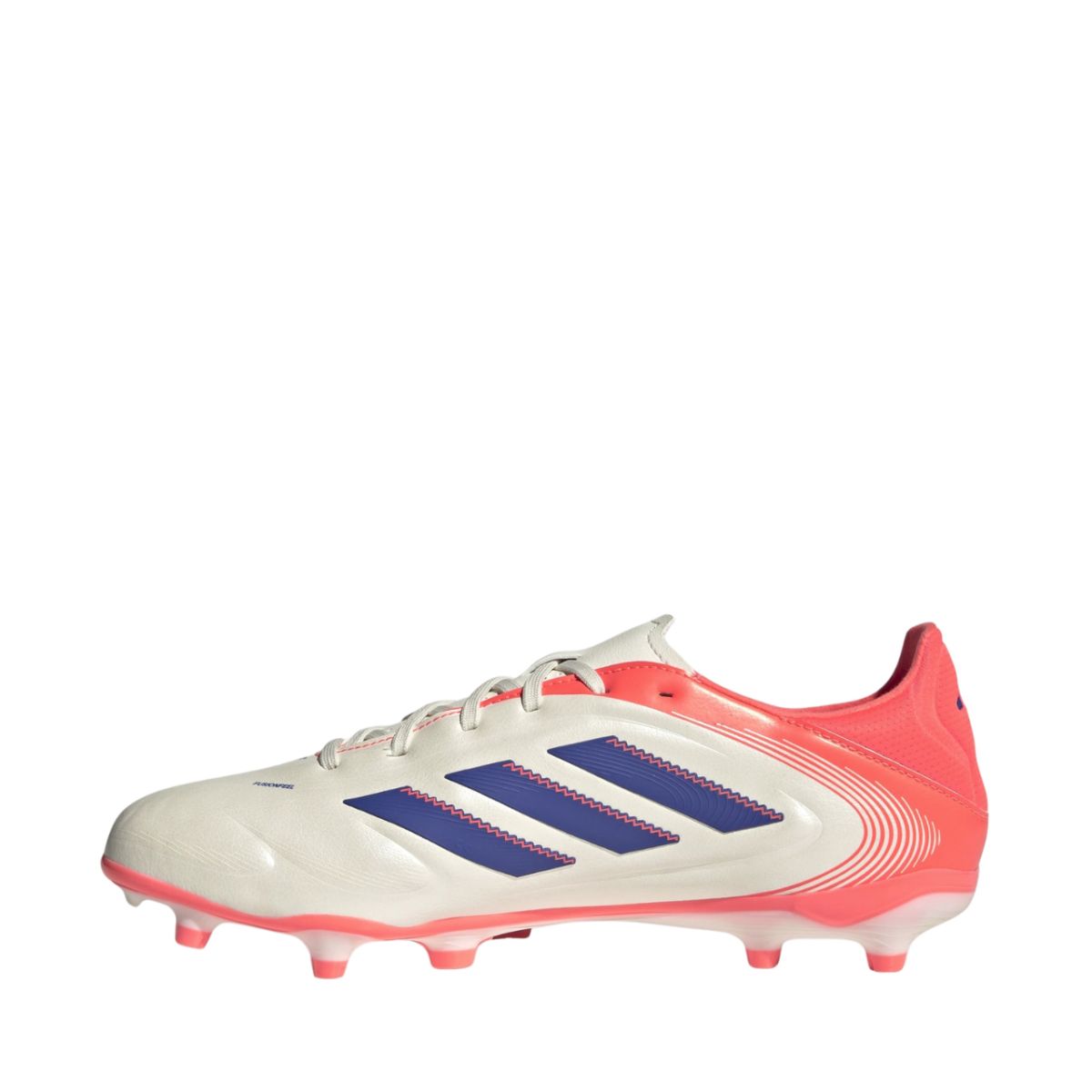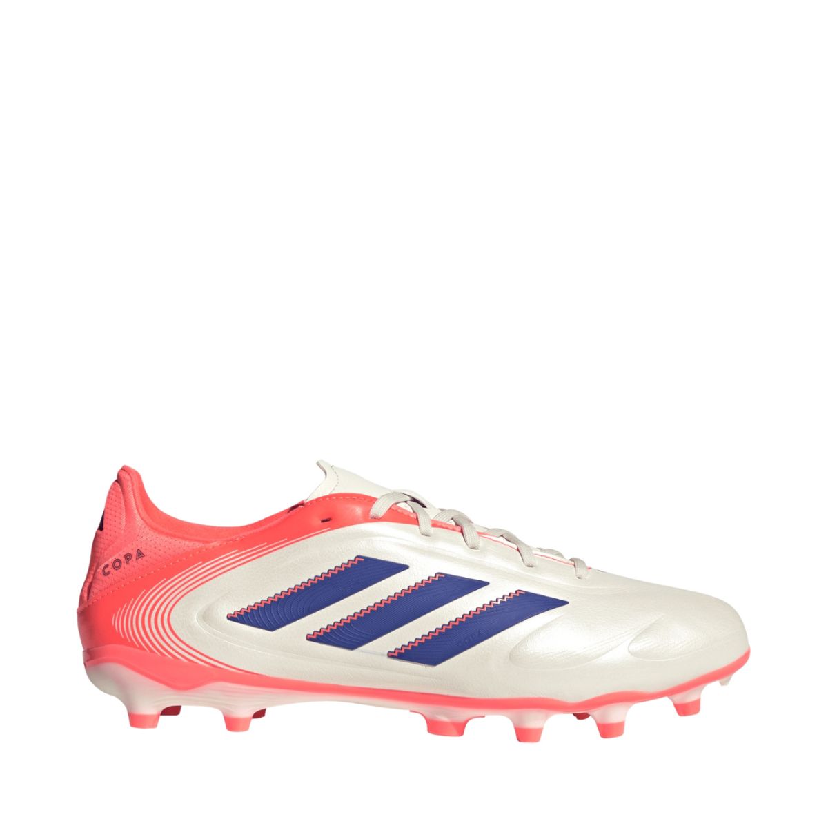 adidas Copa Pure 3 League FG/MG JH6299 Football Boots. These semi-professional adidas Copa football boots are perfect for playing on firm grass and artificial grass. This lace-up boot is part of the premiere Coral Blaze Pack, designed for players who like to get on their opponent's nerves. A soft Fusionfeel synthetic upper features a 3D print on the forefoot. A textile sockliner, perforated, padded tongue, and padded heel enhance comfort. A Comfortplate outsole provides traction. Standard fit. Made with at least 20% recycled content.
