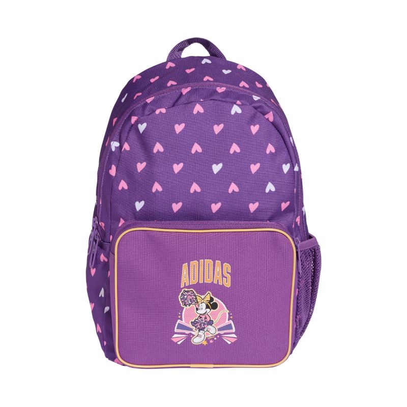 Adidas Disney Minnie Mouse Backpack Purple KA9887 This small adidas sports backpack for kids stands out with its design. Featuring a graphic of Disney's Minnie Mouse, it features a durable plain weave construction. The main compartment opens in two directions. Side mesh pocket. Adjustable, contoured, padded shoulder straps. A strong, woven handle. Adjustable chest strap. Specifications: Material: 100% recycled polyester Dimensions: 34 x 25 cm Capacity: 11.6 l Durable canvas fabric Zipper closure Adjustable shoulder straps Padded back panel