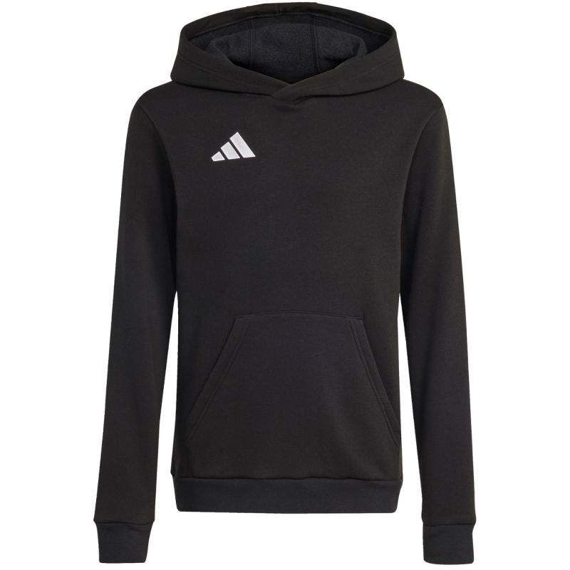 adidas Entrada 26 Hoody for Kids, Black JZ6569 The adidas Entrada Hoody for Kids is a must-have for every young footballer. Its soft-touch construction, a combination of breathable cotton and durable polyester, won't irritate the skin. It features a padded interior. The classic cut allows for a full range of motion. It features a front pocket. A non-adjustable, integrated hood protects the head from harsh weather conditions. Ribbed cuffs and hem. Embroidered brand logo. Material: 70% cotton, 30% recycled polyester.
