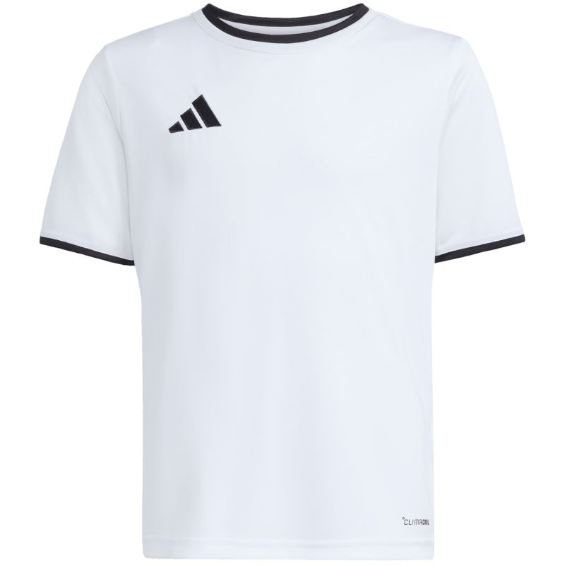 The adidas Entrada 26 Jersey for Kids, White and Black JZ2532. This adidas jersey for kids should be a staple in the athletic wardrobe of every young footballer who wants to focus on perfecting their skills. The lightweight polyester construction is enhanced by Climacool technology, which helps wick sweat away from the skin, keeping you feeling fresh, dry, and cool. The classic cut allows for unrestricted movement. Aesthetically pleasing finishes include a crew neckline and embroidered logo. Material: 100% recycled polyester