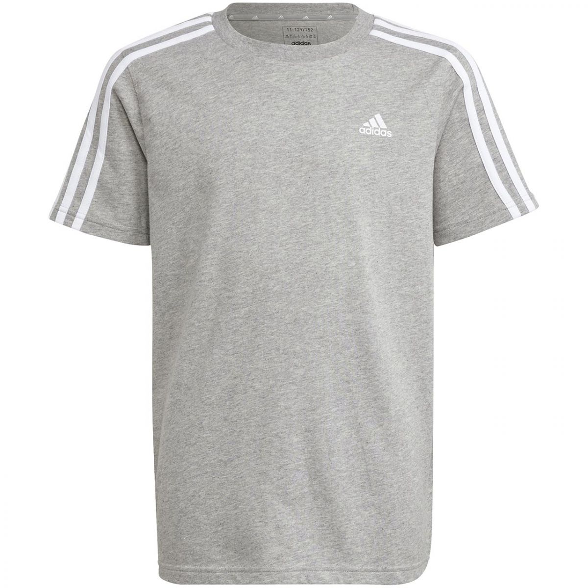 adidas Essentials 3-Stripes Cotton Tee for Kids Gray IB1669