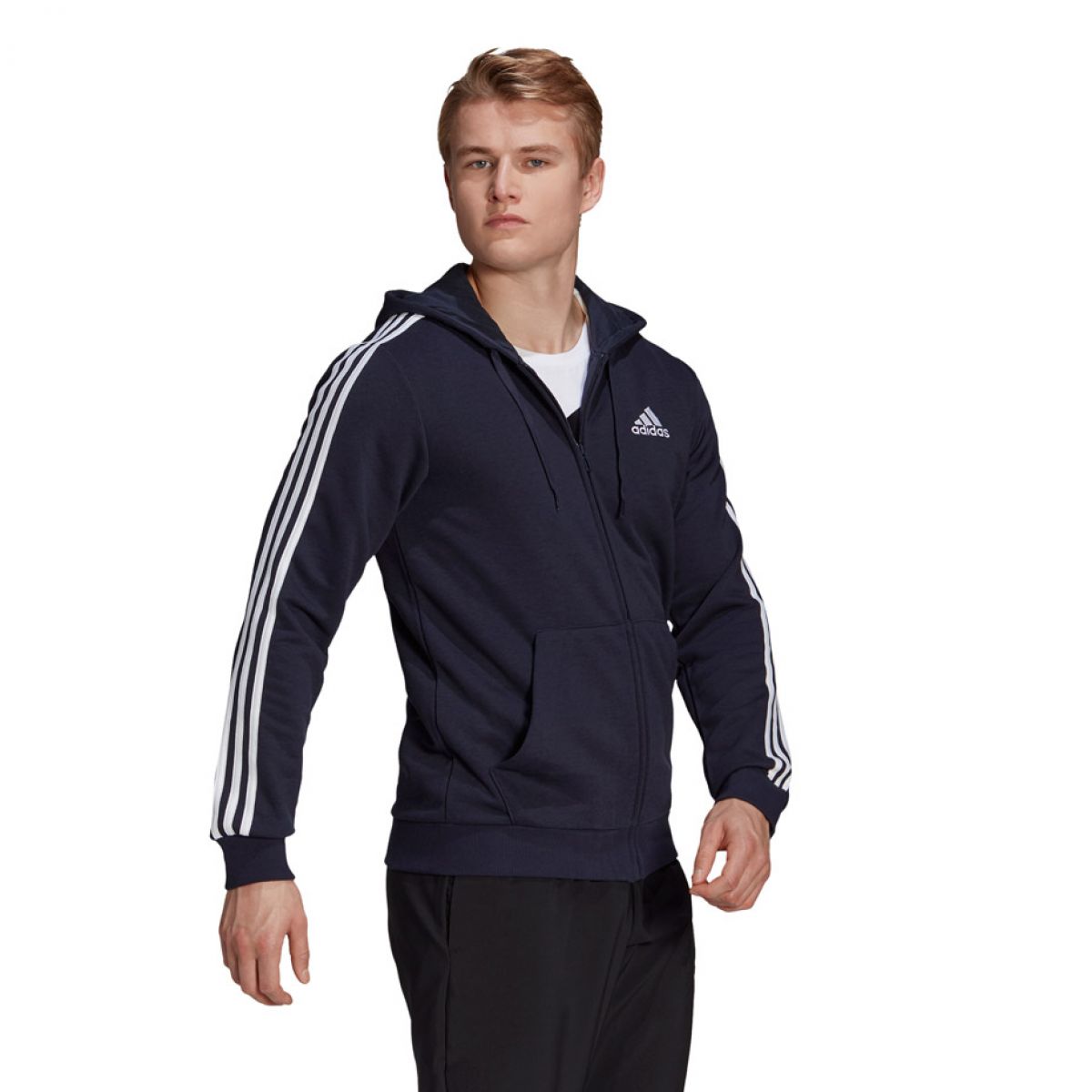 Men's adidas Essentials Full-Zip Hoodie Navy Blue GK9033