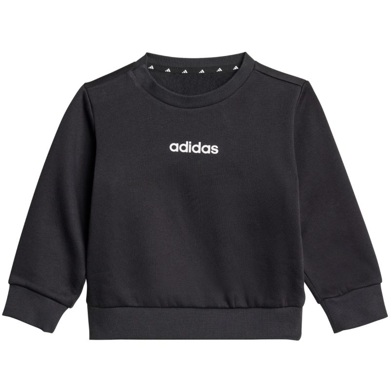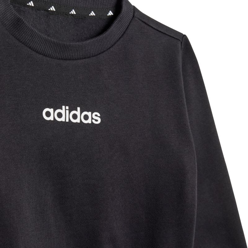 adidas Essentials Joggers Tracksuit for Kids, Black JC9745. This adidas tracksuit for kids is perfect for everyday wear. The sweatshirt and pants are made of cotton and polyester. The tracksuit is cut in a standard fit. Sweatshirts up to size 86 cm feature snap closures on the shoulder. The pants have an elastic waistband with a drawstring for adjustment. The legs are finished with elastic cuffs. Cargo pockets. Material: 70% cotton, 30% polyester