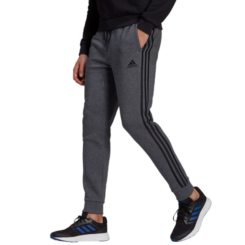 Men's adidas Essentials Tapered Cuff 3 Stripes Pants Dark Gray GK8826