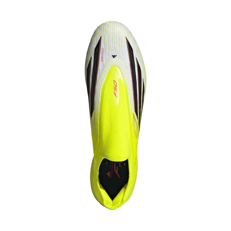 adidas F50 Elite LL FG JR6458 football boots. The technically advanced adidas F50 men's boots combine innovative solutions with an original, unique design. This model is part of the Born For Goals Pack collection. Professional football boots for firm ground. Specifications: · Standard fit · Laceless construction · Fibertouch upper with Sprintweb 3D texture · Low adidas PRIMEKNIT collar · Synthetic · Sprintframe 360 outsole for firm ground