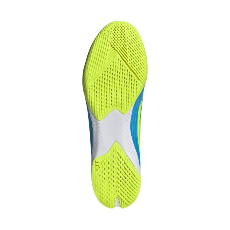 The adidas F50 League IN JR8973 men's football boots will surprise defenders with their incredible speed. These adidas indoor shoes from the Ice Cold Precision collection have a unique design. They feature a Fiberskin upper with strategically placed 3D lines. Classic lacing. The Tunnel Tongue locks your foot in place while running. A cushioned EVA midsole supports the foot. A textile lining and a non-marking rubber outer layer. Additionally, they are partially made from recycled materials, significantly reducing plastic waste.