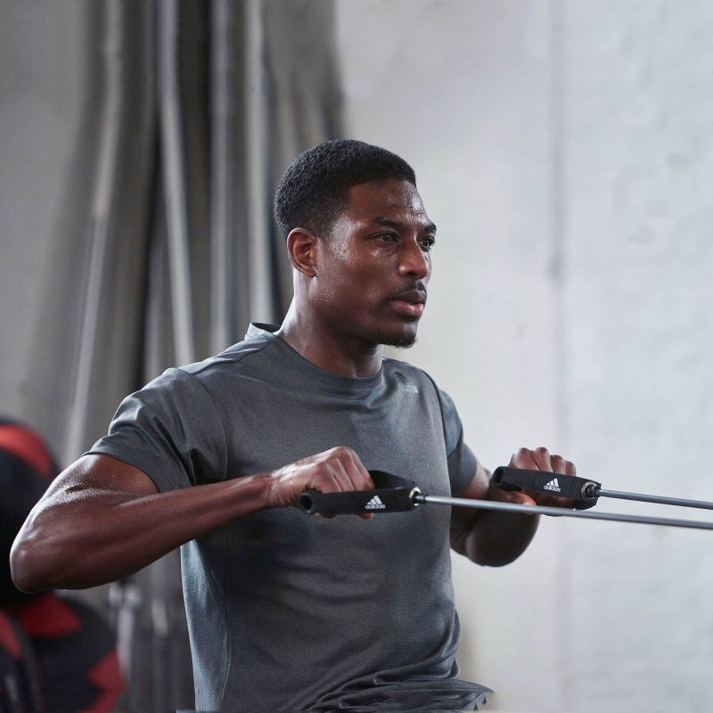- Equipped with comfortable handles, this adidas fitness band helps strengthen, tone, and firm the body during workouts. Suitable for upper and lower body training, it allows for a wide range of exercises, so in addition to strengthening exercises, it's also useful for stretching. The band's uses are extensive. Its main purpose is to create resistance that must be overcome. This makes it particularly effective for strengthening the abdominal, arm, back, and leg muscles.
