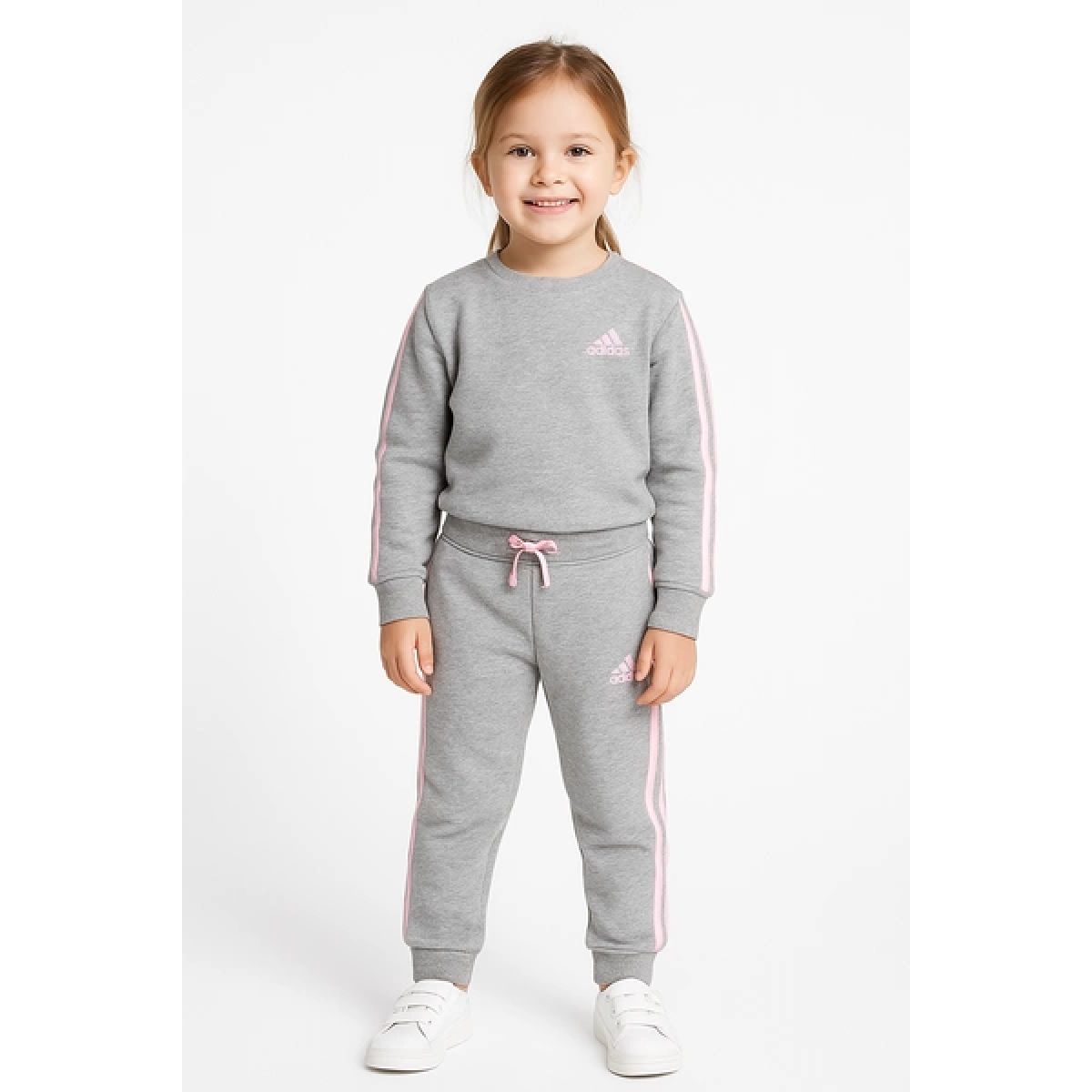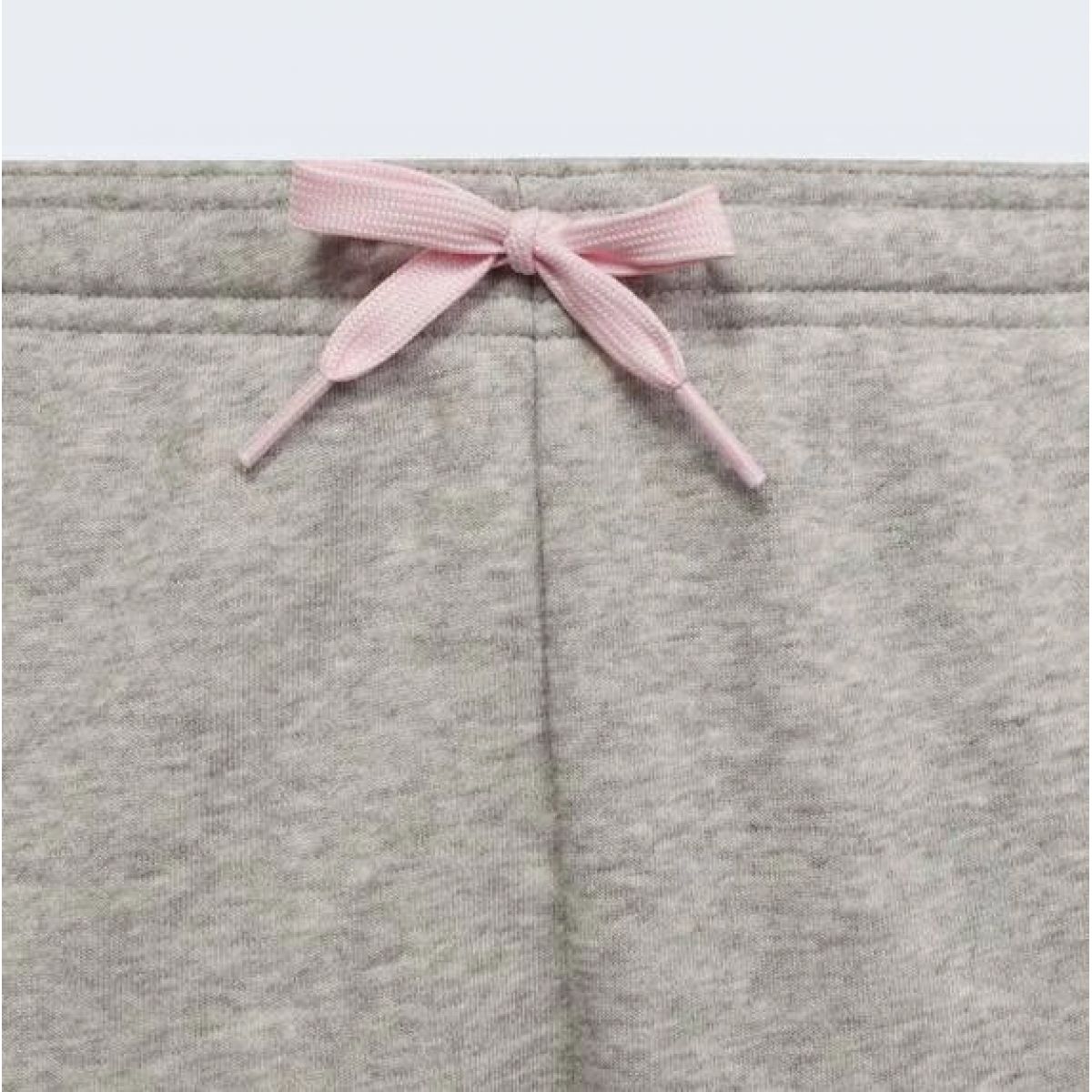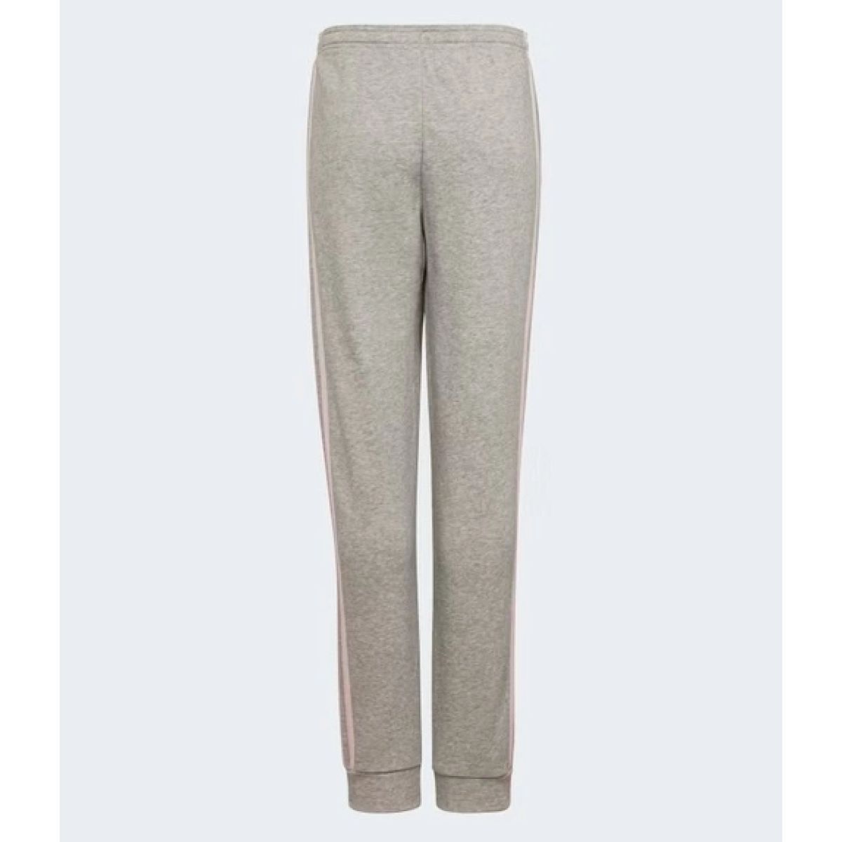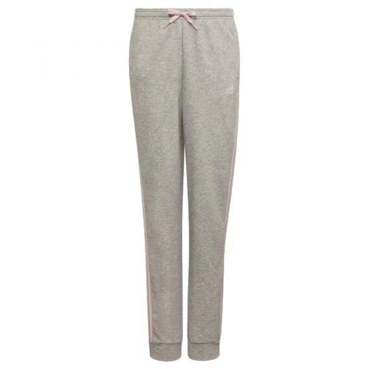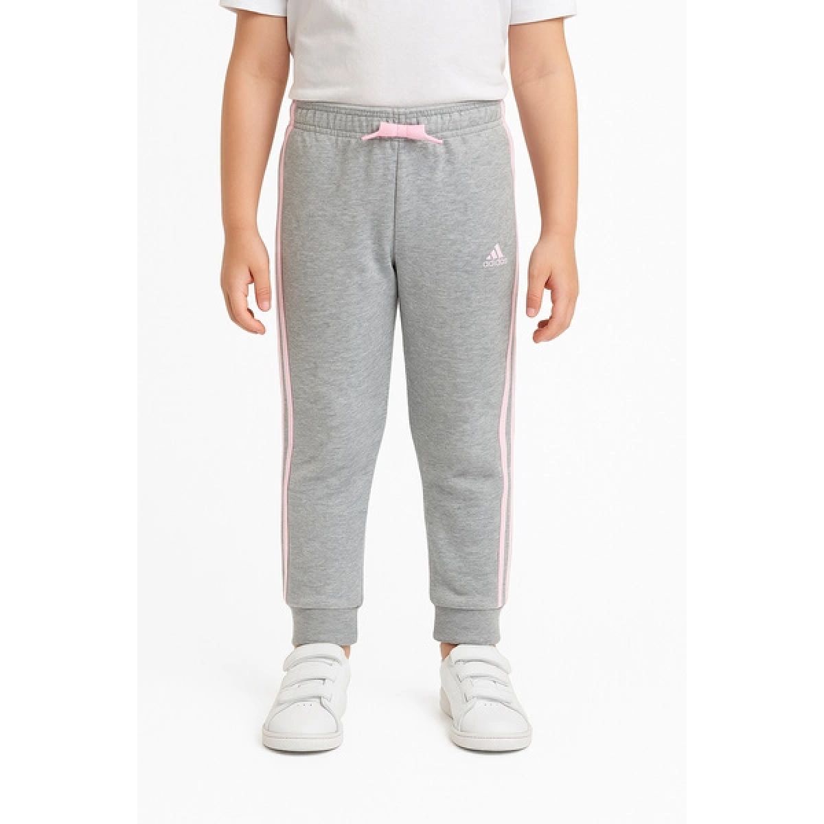 - Fashionable Adidas sweatpants in gray with pink stripes and logo.