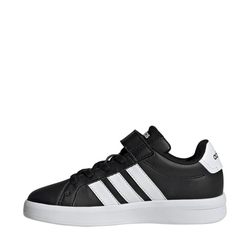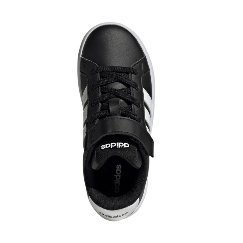 adidas Grand Court 3.0 Kids' Shoes Black HP3533. These adidas kids' shoes combine comfort and modern design. These lightweight shoes provide comfortable foot protection for everyday wear. Synthetic upper with textile lining. Rubber outsole. Practical hook-and-loop closure. Elastic lace-up straps.