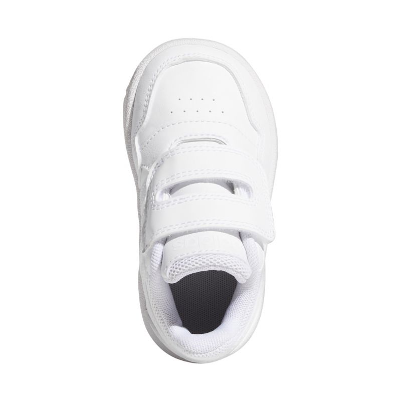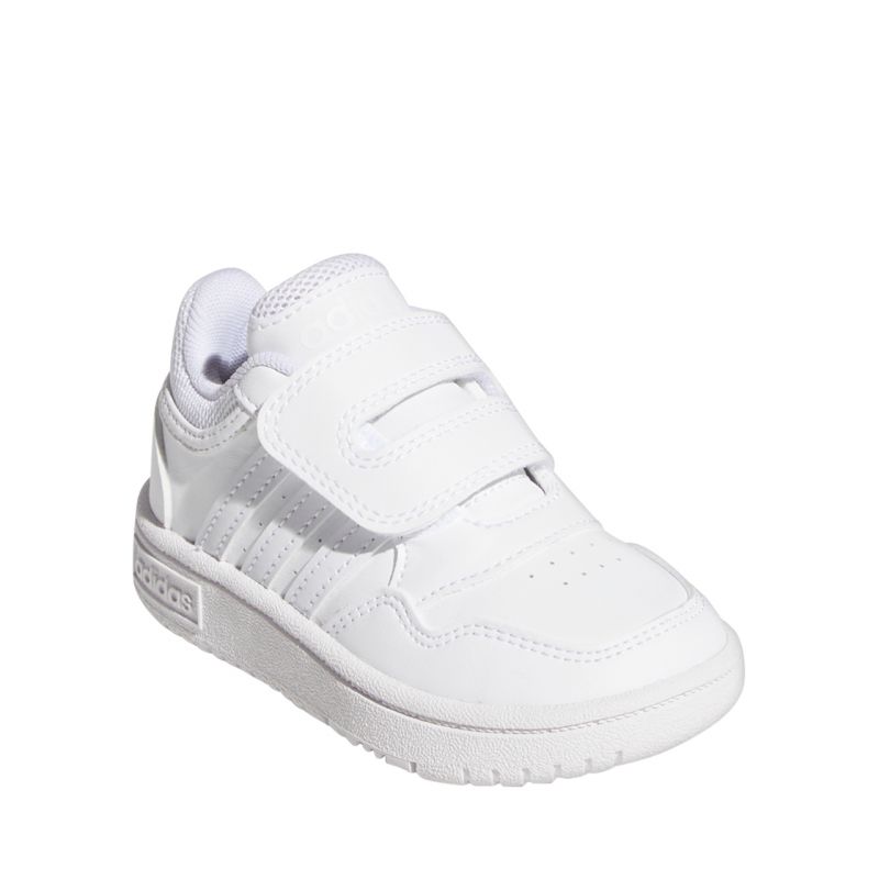 adidas Hoops 3.0 Kids' Shoes White GW0442 These adidas kids' shoes are perfect for everyday wear. The synthetic leather upper provides comfortable foot support. Textile lining. Velcro strap. Soft, textile collar trim. Rubber platform sole. Grippy tread.