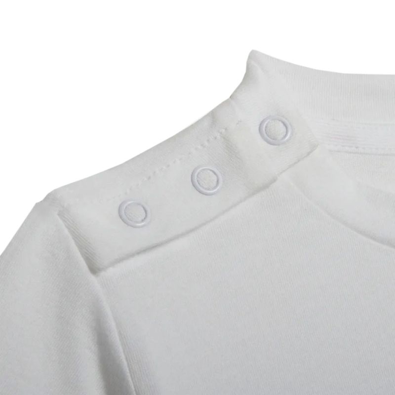 - Featuring snaps on the shoulders for easy dressing, this T-shirt is made entirely of breathable cotton. Its classic cut allows for unrestricted movement.
