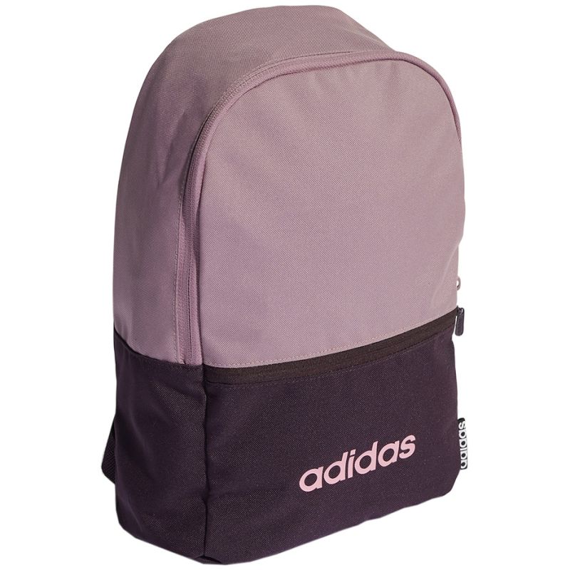 adidas Kids Classic Backpack Pink and Burgundy HN1616 This adidas kids' backpack combines modern style and functionality. This compact and lightweight backpack is made of durable plain weave fabric. The polyester fibers are recycled. It features a spacious main compartment with a long zipper. A front zip pocket. Adjustable, softly padded shoulder straps. Specifications: Material: 100% recycled polyester Dimensions: 35 x 25 x 11 cm Capacity: 10 l