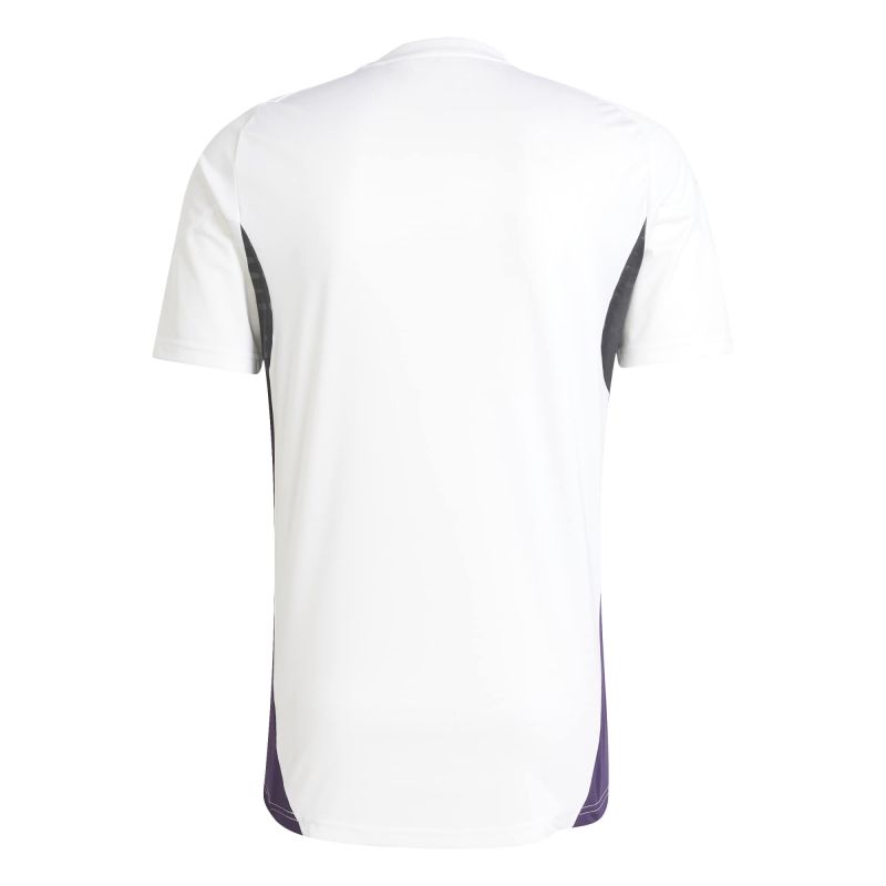 Play like a pro in this men's Manchester United FC training top from adidas. Featuring a white colorway with aurora plum and black details, this slim-fitting top is made from smooth, lightweight recycled polyester jersey for total comfort. A classic crew neck and short sleeves provide a classic fit, while AEROREADY sweat-wicking technology helps keep you cool when the game heats up. The top is finished with 3-Stripes on the shoulders, a Performance logo, and the Manchester United crest on the chest.