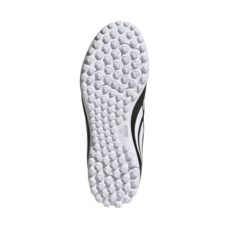 adidas Predator Club VEL TF KI8867 Junior Football Boots. These adidas Predator junior football boots are from the Black Pack collection. They are designed for play on artificial grass. The synthetic upper has a textured structure. A wider toe box supports the anatomical needs of developing feet. Velcro closure. Textile lining. A turf outsole provides traction. Level: amateur.