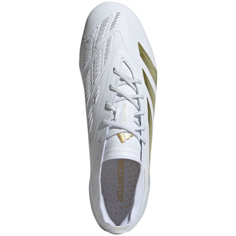 adidas Predator Elite FG IG4009 football boots Professional adidas football boots from the Dayspark Pack collection will prove themselves when playing on hard, natural surfaces. Adhesive Strikeskin sections placed linearly on the textile upper. Additionally, the shoes have a synthetic coating. HybridTouch upper. Two-piece Primeknit collar. Asymmetrical lacing. The flexible sole made of two plates has gained differentiated studs. Technical data: Synthetic upper with adhesive Strikeskin elements Hybridtouch 2.0 in the forefoot adidas Primeknit collar Controlframe 2.0 FG outsole Standard fit Laced model