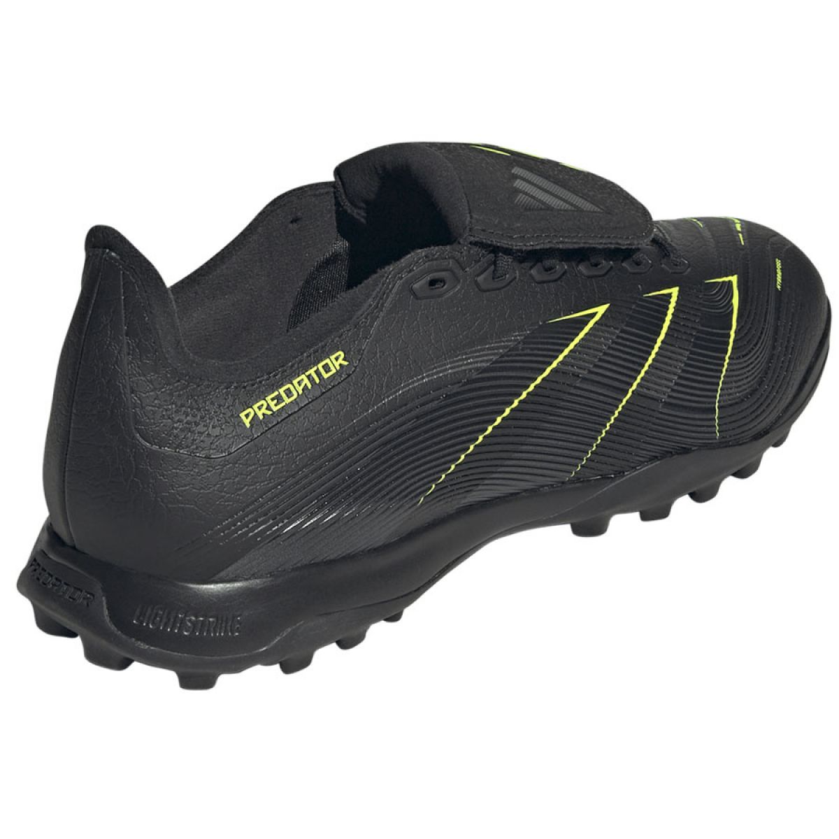 Discover the difference between desire and confidence in the adidas Predator boots, built for scoring goals. These League football boots feature a Hybridfeel upper with an allover 3D texture, a fold-over tongue, and Strikescale grippy inserts to help you control the ball when striking. A Lightstrike midsole and a rubber outsole with lugs provide comfort and stability on artificial turf.