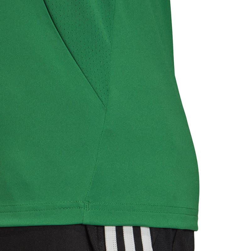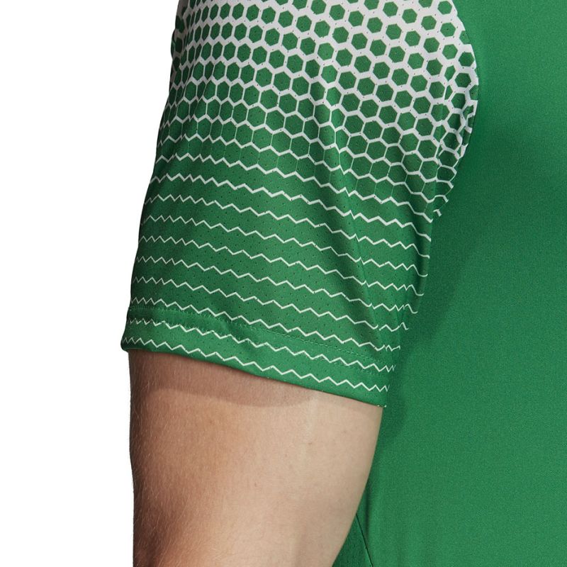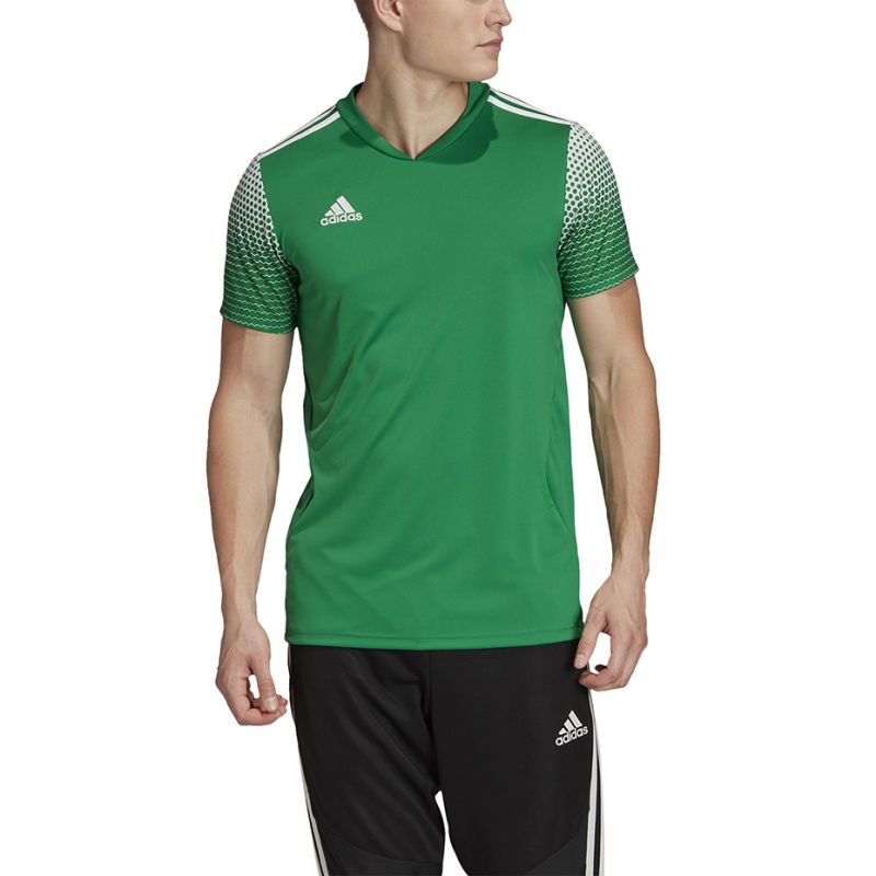 - Green adidas T-shirt with embroidered brand logo on the chest and original graphics on the sleeves.