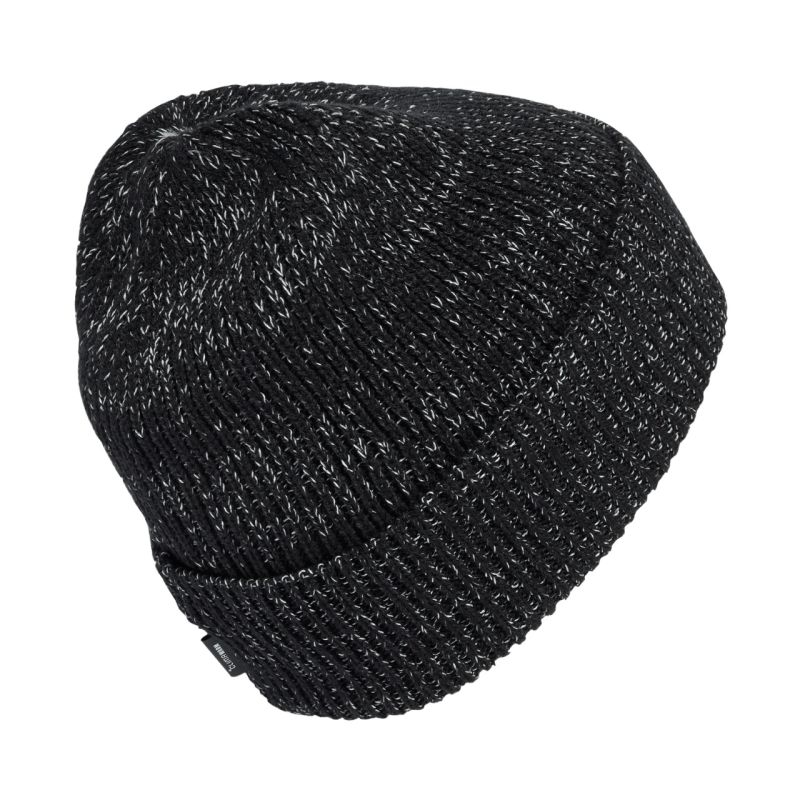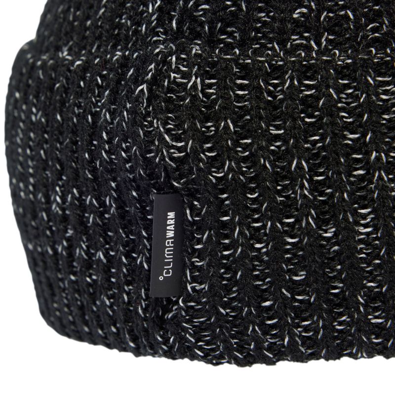 adidas Run Climawarm Cap, Black JM3079. This adidas beanie keeps you warm and comfortable while running on cooler days. Climawarm technology traps heat and wicks away sweat. The knit construction is stretchy. Reflective logo on the hem. Material: 80% acrylic, 18% polyester (recycled)