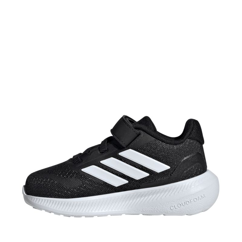 adidas Runfalcon 5 EL I Kids' Shoes Black IE8598 These adidas kids' shoes are perfect for everyday wear. They feature a textile upper reinforced with synthetic inserts. Elastic laces with a hook-and-loop closure. They feature a contoured Cloudfoam midsole. They feature EVA cushioning. They feature a textile lining. The EVA outsole provides grip. The upper is made from at least 20% recycled materials.