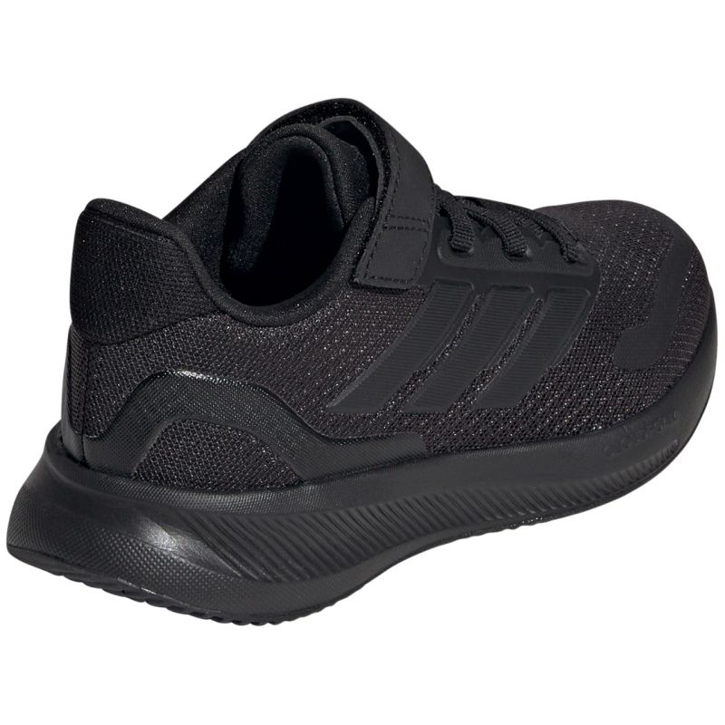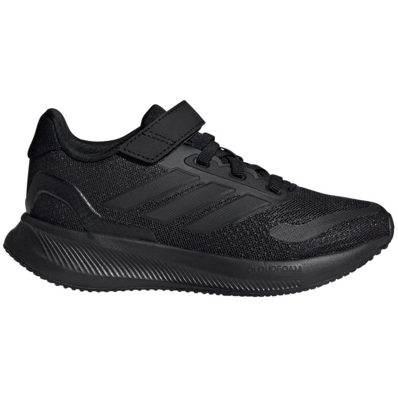adidas Runfalcon 5 Kids' Shoes Black IE8573. These adidas shoes for kids are perfect for running and everyday wear. They feature a textile upper reinforced with synthetic inserts. Elastic laces with a hook-and-loop closure. A contoured Cloudfoam midsole. Textile lining. A rubber outsole ensures grip. The upper is made from at least 20% recycled materials.