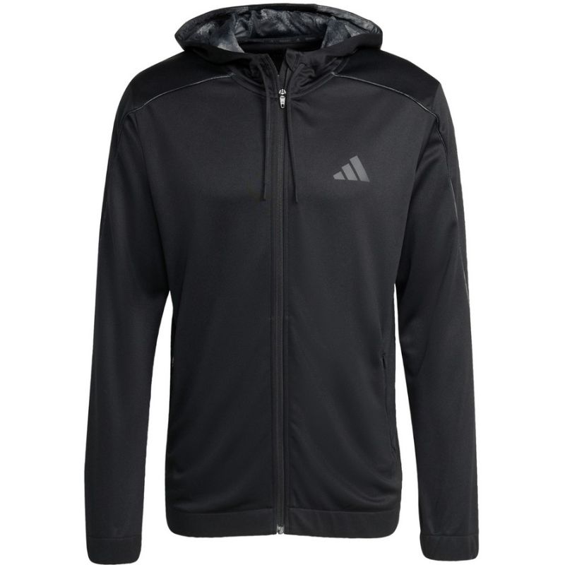 Men's adidas SEA FZ HD Sweatshirt, Black JV7243. You can wear this men's adidas sweatshirt for your morning run, walk, or workout, even in a chilly breeze. It's made of quick-drying fabric with Climacool technology. It has a standard fit. It features a full-length zipper. Side pockets. Drawstrings at the cuffs and hem. A fixed, adjustable hood. Material: 100% recycled polyester.
