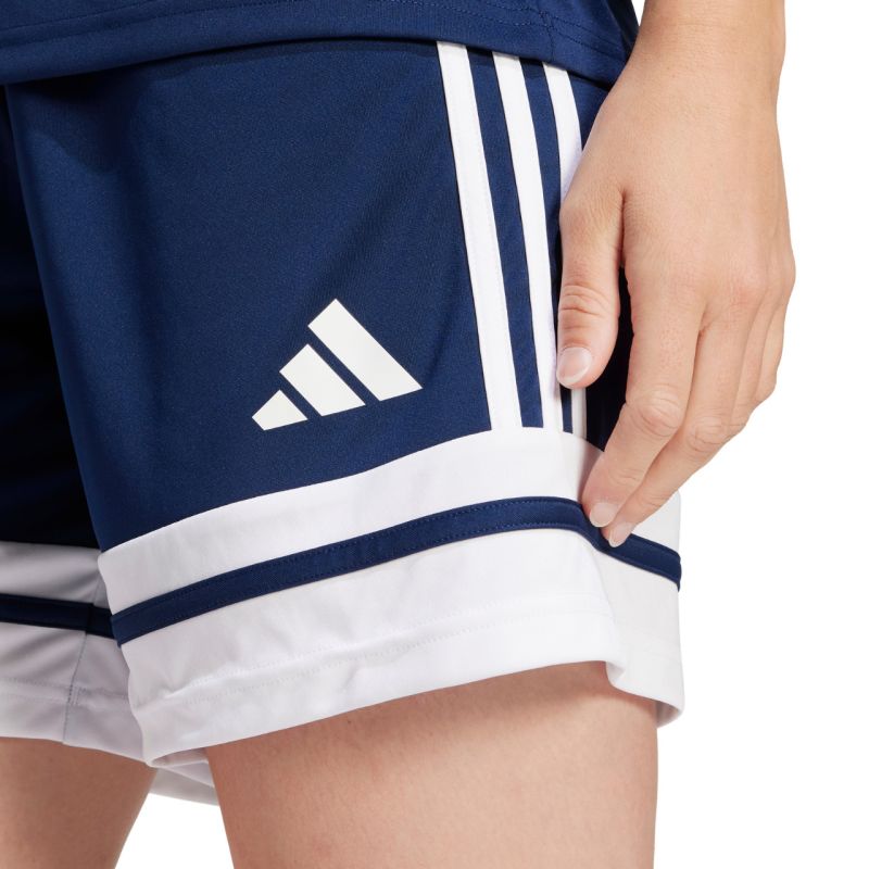 adidas Squadra 25 Women's Shorts, Navy Blue JJ0014. These adidas Squadra women's shorts are perfect for all players who want to lead their team to victory without interruption. The elastic waistband is adjustable with a drawstring. Aeroready technology keeps you dry until the end of the match or training session. Quick-drying recycled fibers. Material: 100% recycled polyester, densely knit.